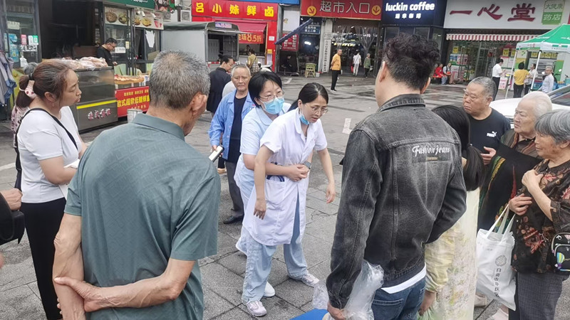 在金帝廣場活動現(xiàn)場,醫(yī)療團隊為320余名市民提供精準(zhǔn)健康服務(wù)。除中醫(yī)體質(zhì)辨識、耳穴壓豆等傳統(tǒng)技法體驗外,“大篷車”攜帶了便攜式彩超、心電檢查等設(shè)備,現(xiàn)場為65名群眾完成肝膽胰脾彩超及心電圖檢查。急診科醫(yī)護團隊精心設(shè)計情景式教學(xué),通過模擬氣道異物梗阻、心臟驟停等突發(fā)狀況,手把手教授心肺復(fù)蘇術(shù)和海姆立克急救法,吸引近百名群眾參與實操演練。