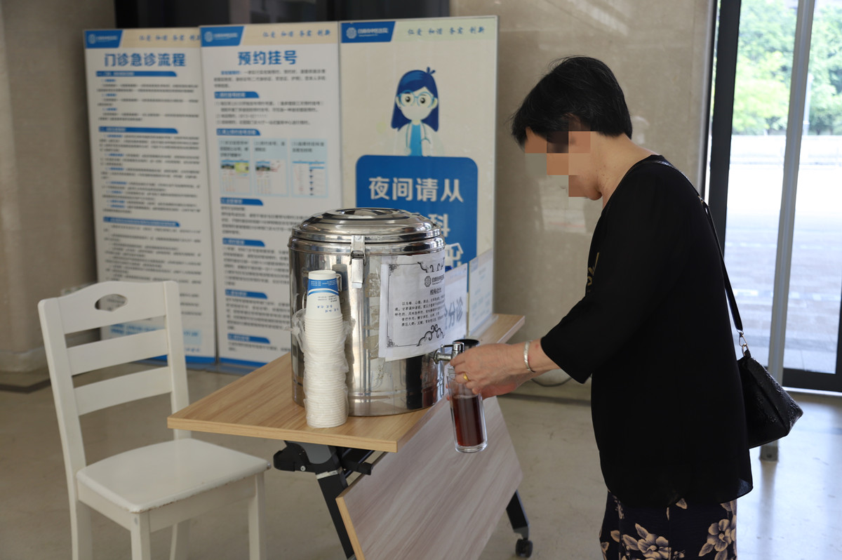“您好!請喝杯酸梅飲?!薄疤鞖鉄?,您喝杯清涼茶飲消消暑。”醫(yī)院對患者的貼心關(guān)懷,不只是表達(dá)在語言中,更體現(xiàn)在行動中?!斑@么熱的天,你們工作那么忙,還給我們送解熱降暑的中藥茶飲,真是太感謝了!”“醫(yī)院考慮太周到了!”一杯酸梅飲拉近了醫(yī)院和患者之間的距離。